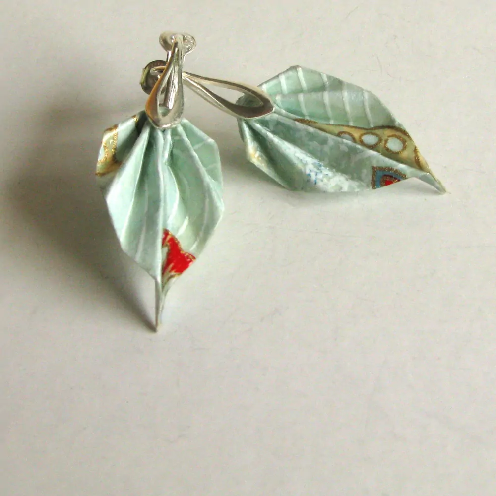 Origami náušnice vytvořené z kvalitního japonského washi papíru. Jsou upevněny na háček z chirurgické oceli vyrobený na zakázku.