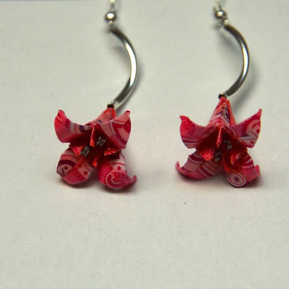 Náušnice vytvořené z origami papíru od http://www.fler.cz/jerja. Složila jsem z něj tvar lilie.