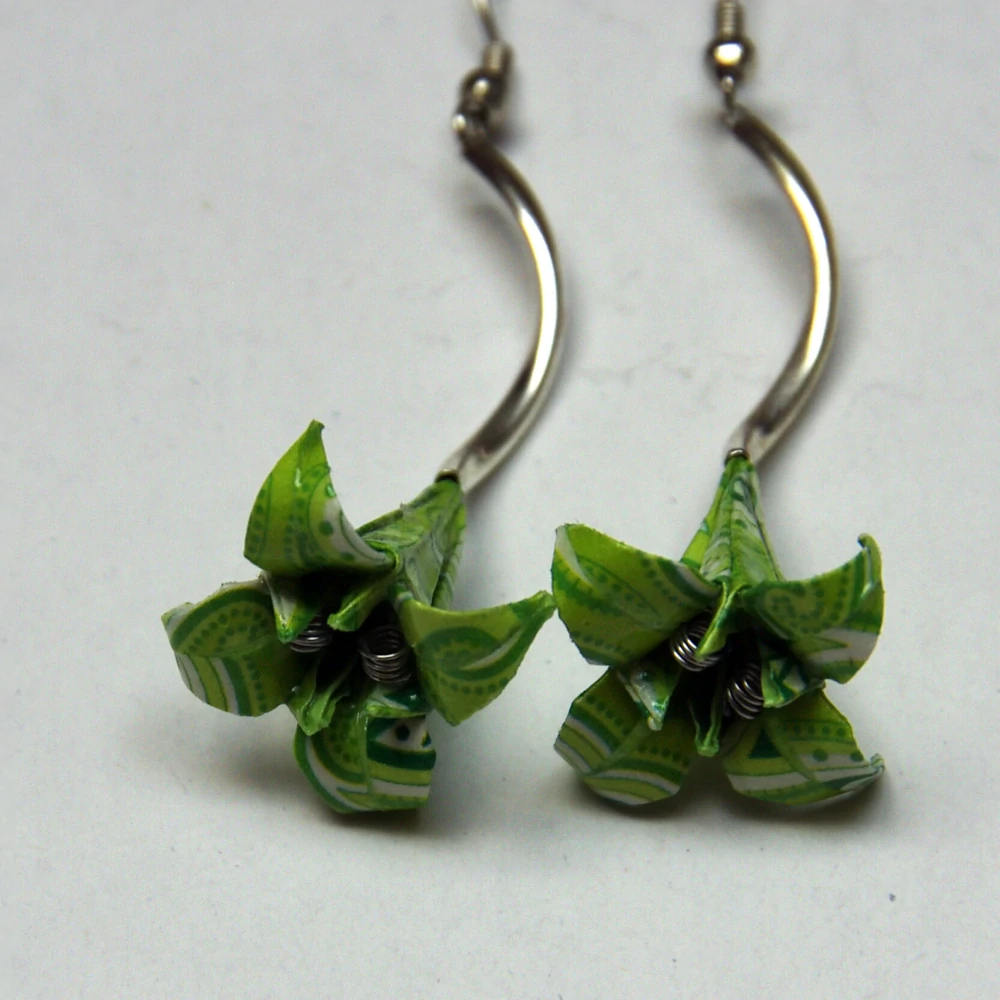 Náušnice vytvořené z origami papíru od http://www.fler.cz/jerja. Složila jsem z něj tvar lilie.