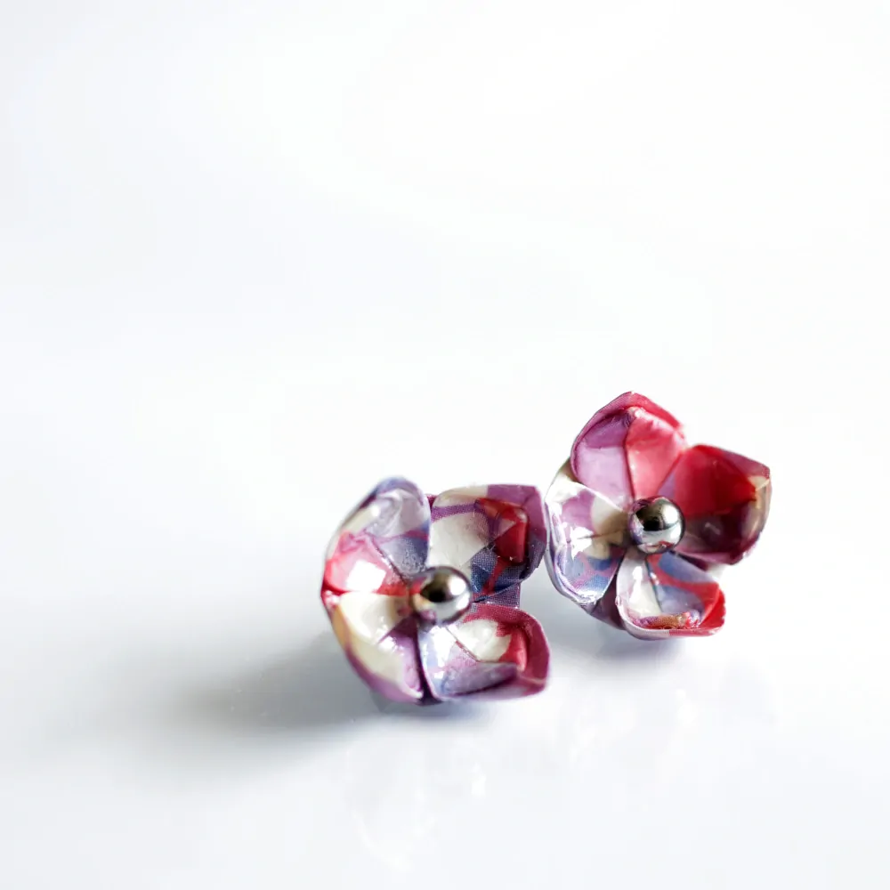Jde o náušnice vytvořené origami technikou do tvaru lotosového květu na puzetě.