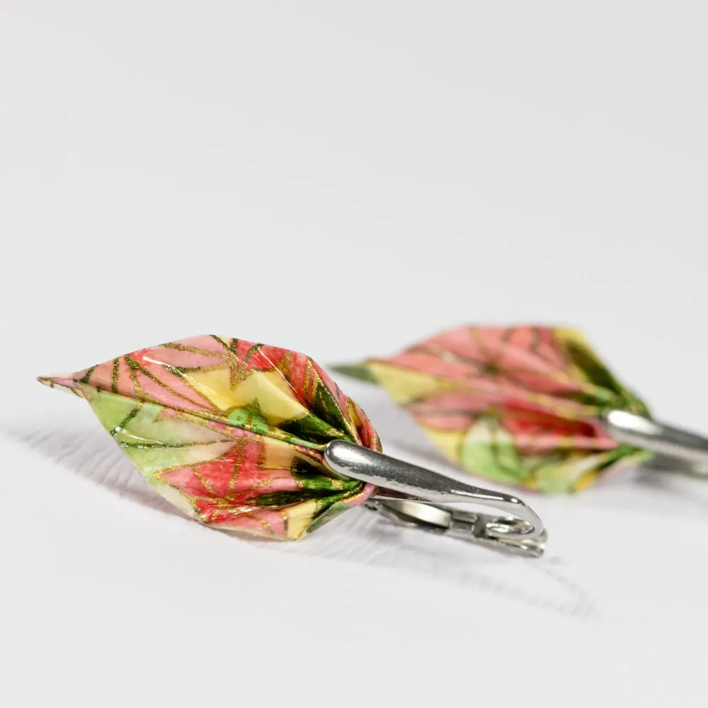 Origami náušnice vytvořené z kvalitního japonského washi papíru. Jsou upevněny na háček z chirurgické oceli vyrobený na zakázku.
