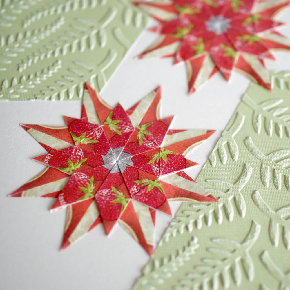 Papírové přání velikosti A5 (tj. jako malý sešit). Je tvořeno čtvrtkou, která je vyzdobena 3D embossovanou dekorací z barevného kartonu s odlišným jádrem. Doplněno je ozdobou vzniklou metodou tea bag folding (tj. z čajových sáčků) v ladících barvách.