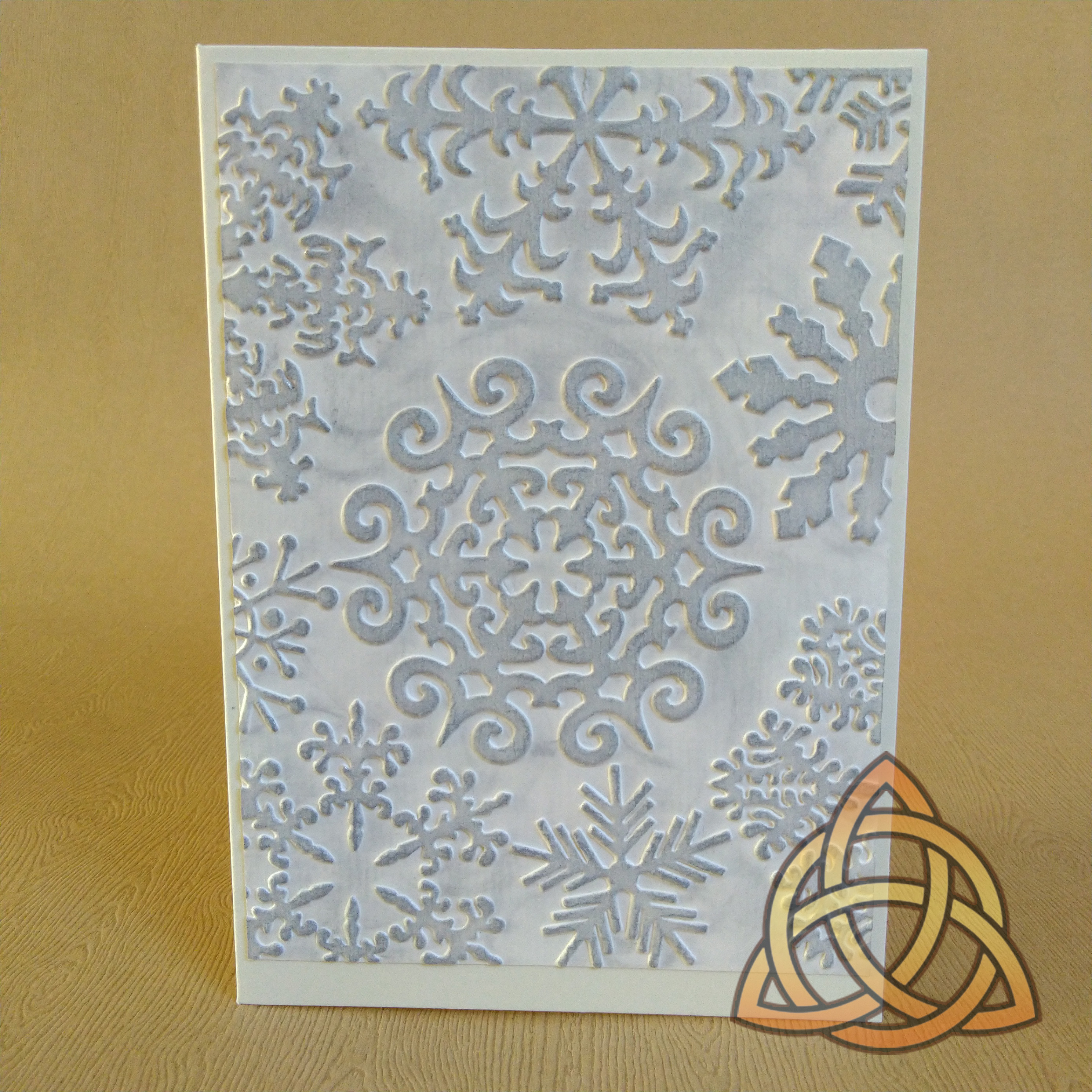 Papírové přání velikosti A6 . Je tvořeno čtvrtkou, která je vyzdobena 3D embossovanou dekorací a dobarvena speciálními barvami.