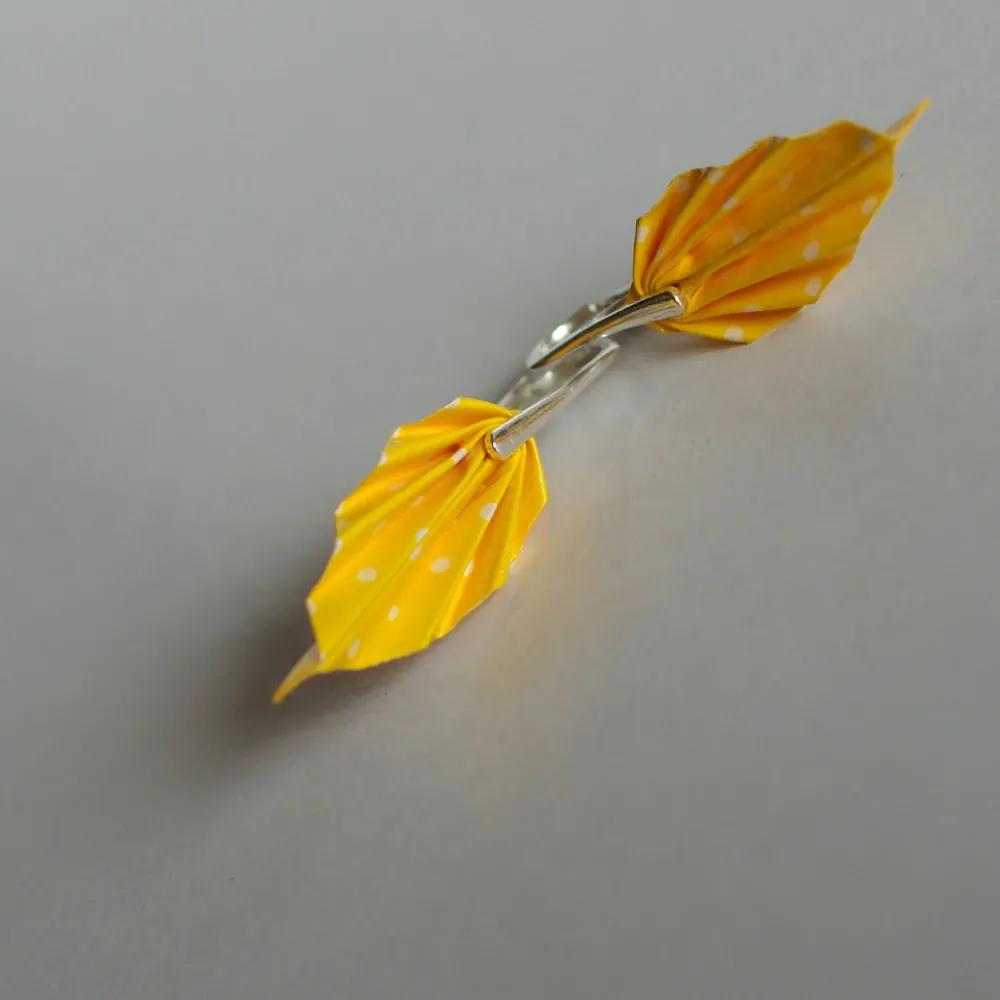Origami náušnice vytvořené z kvalitního origami papíru. Jsou upevněny na háček z chirurgické oceli vyrobený na zakázku.