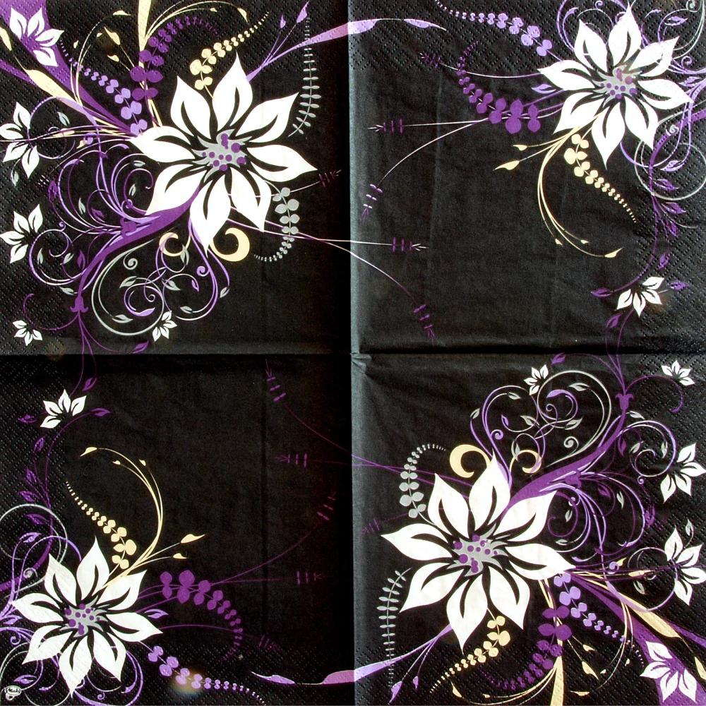 #ubrousek #decoupage #dekorace #černá #bílá #fialová #květ #květina #květinový vzor #květinová dekorace