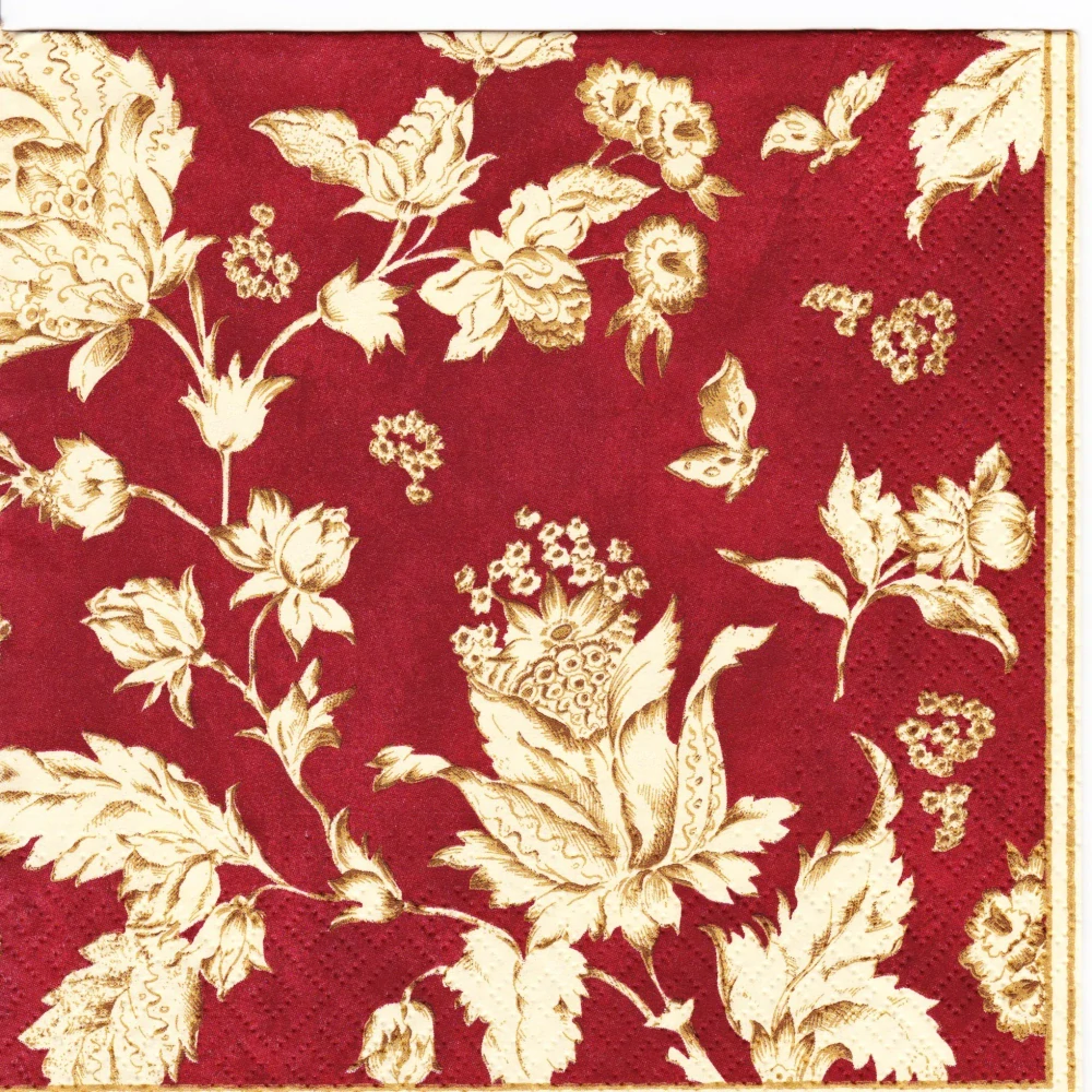 #ubrousek #decoupage #dekorace #červená #béžová #ornament #květ #květinový