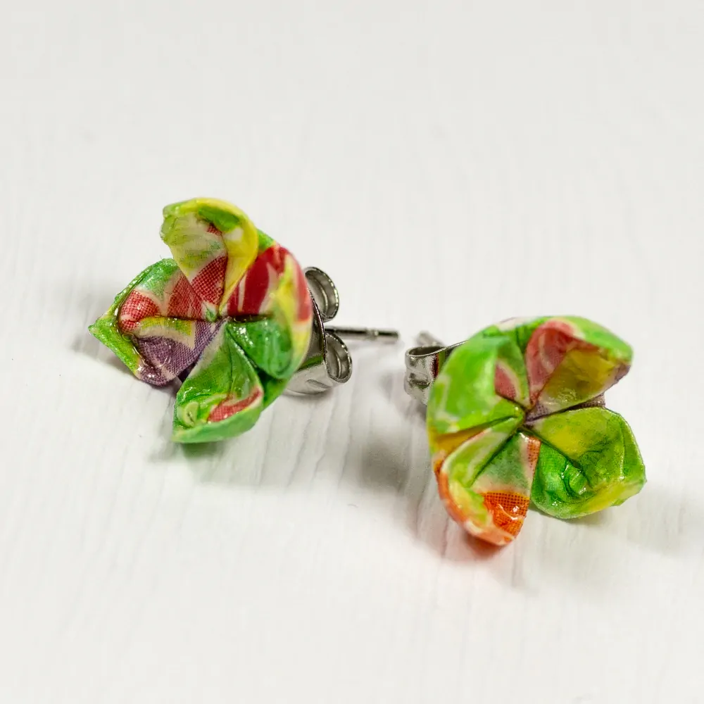 Jde o náušnice vytvořené origami technikou do tvaru lotosového květu na puzetě z chirurgické oceli. Květiny jsou složeny z origami papíru od firmy Heyda. Lotos má rozměr cca 1 x 1 cm.