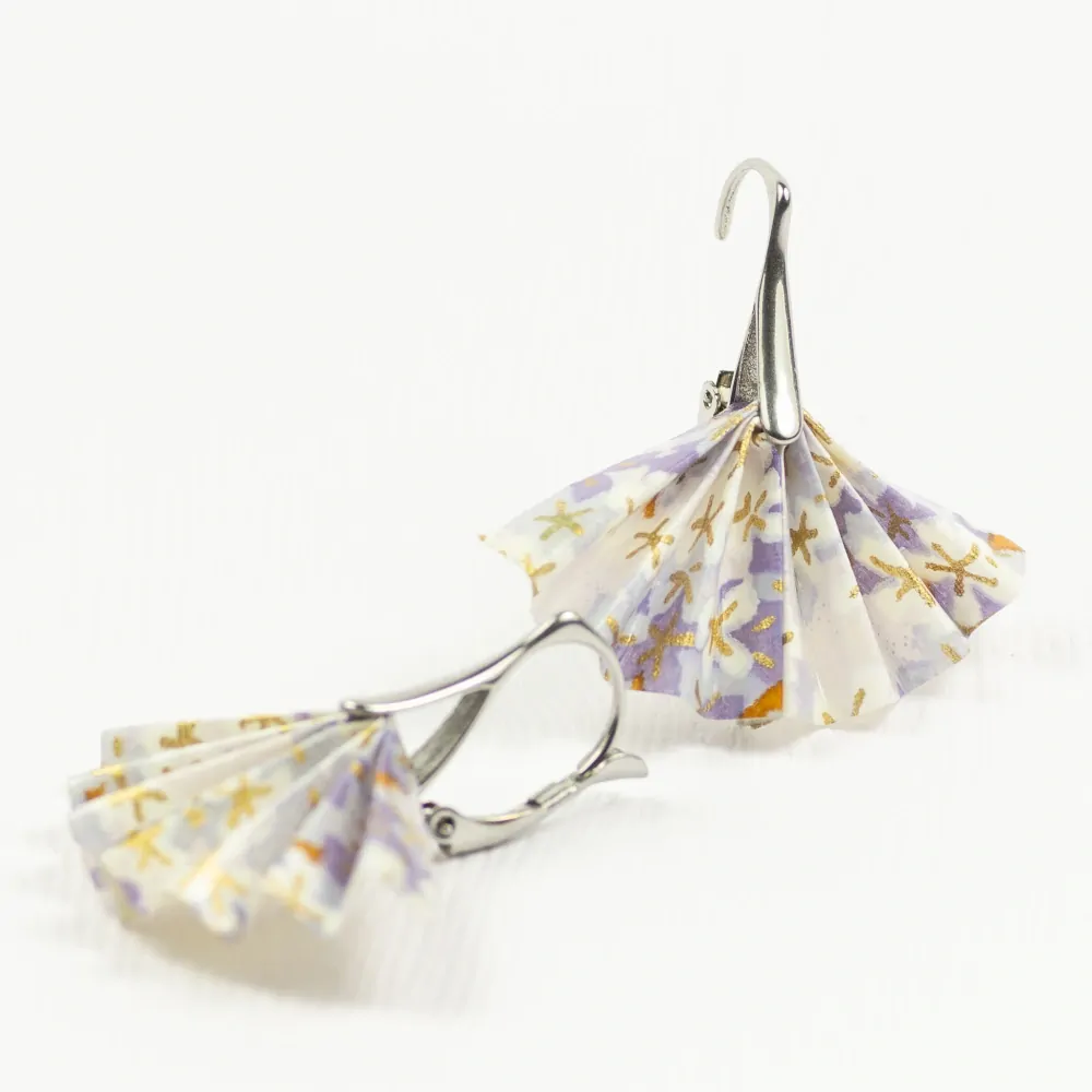 Origami náušnice vytvořené z kvalitního japonského washi papíru. Jsou upevněny na háček z chirurgické oceli vyrobený na zakázku.