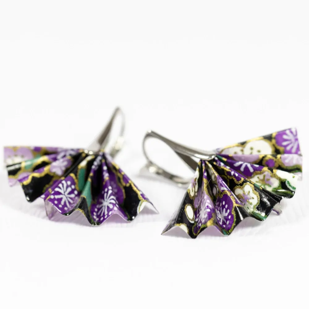 Origami náušnice vytvořené z kvalitního japonského washi papíru. Jsou upevněny na háček z chirurgické oceli vyrobený na zakázku.