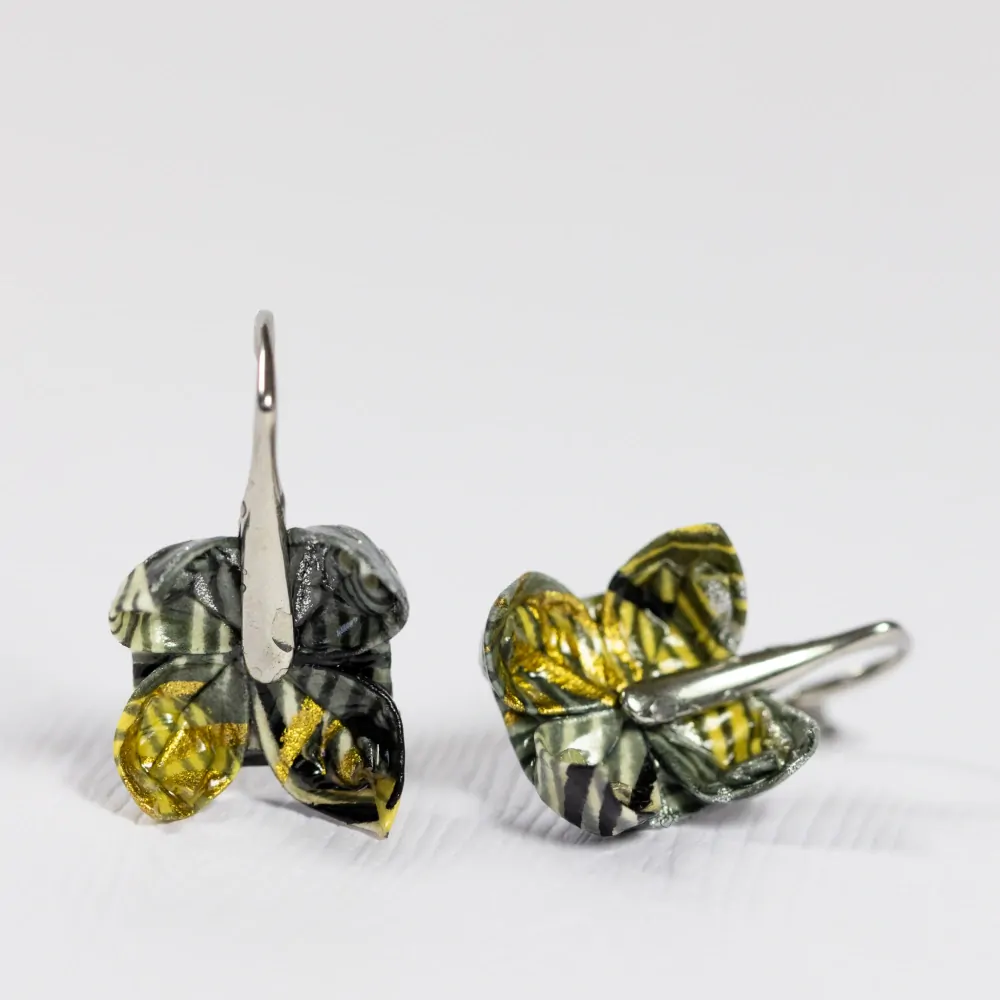 Origami náušnice vytvořené z kvalitního japonského washi papíru. Jsou upevněny na háček z chirurgické oceli vyrobený na zakázku.