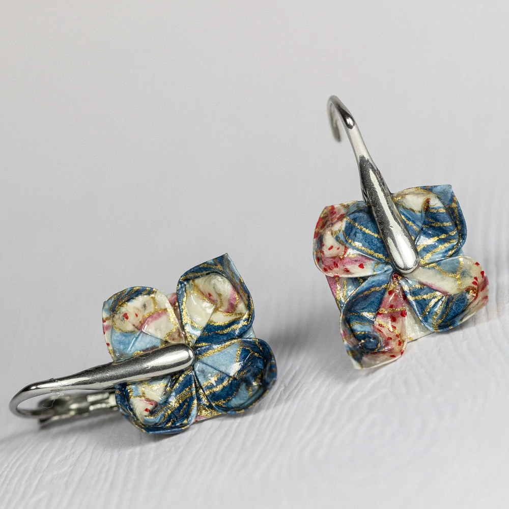 Origami náušnice vytvořené z kvalitního japonského washi papíru. Jsou upevněny na háček z chirurgické oceli vyrobený na zakázku.