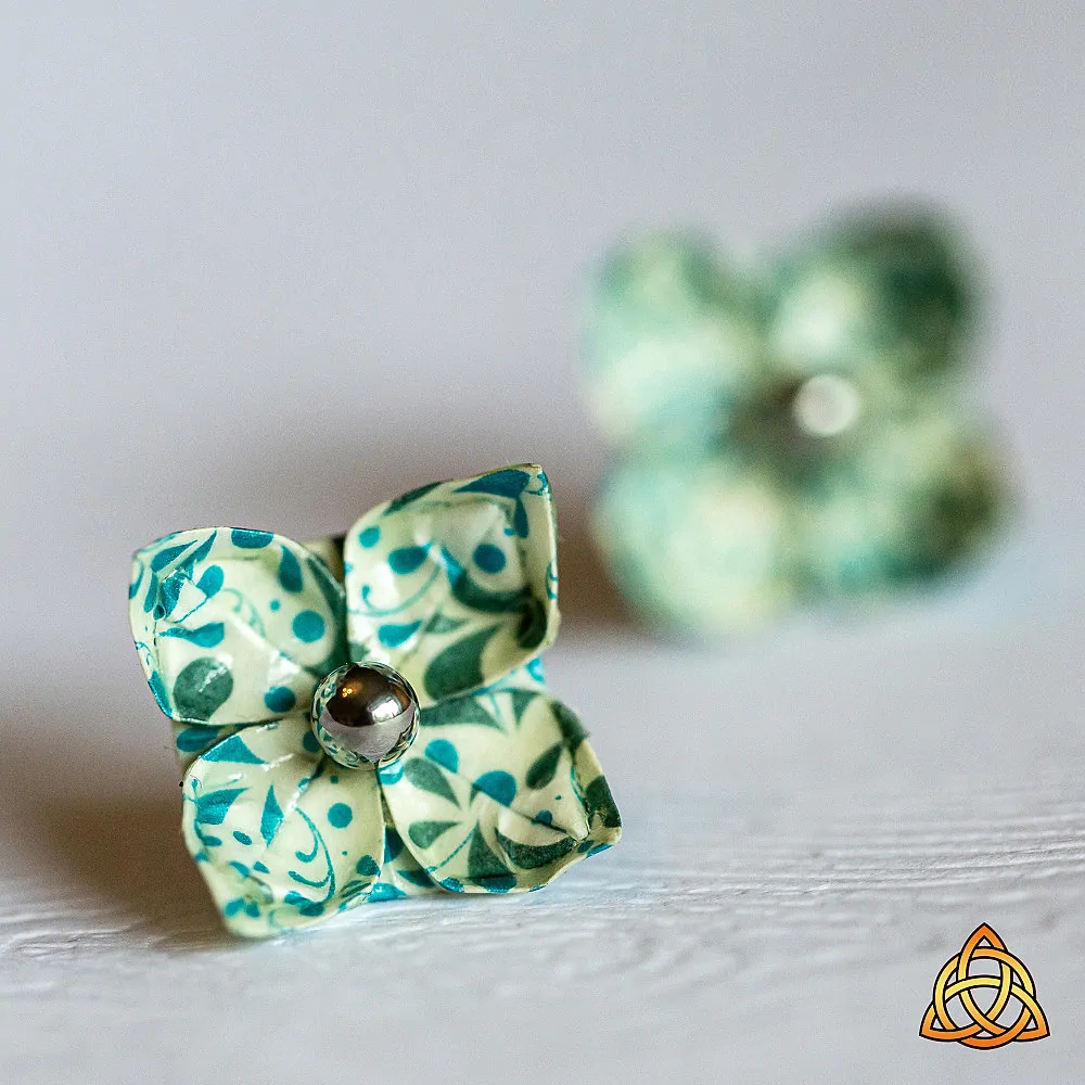 Jde o náušnice vytvořené origami technikou do tvaru lotosového květu na puzetě.