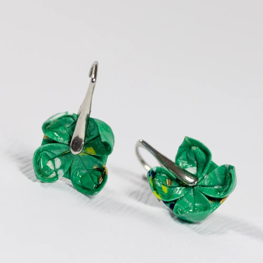 Origami náušnice vytvořené z kvalitního japonského washi papíru. Jsou upevněny na háček z chirurgické oceli vyrobený na zakázku.