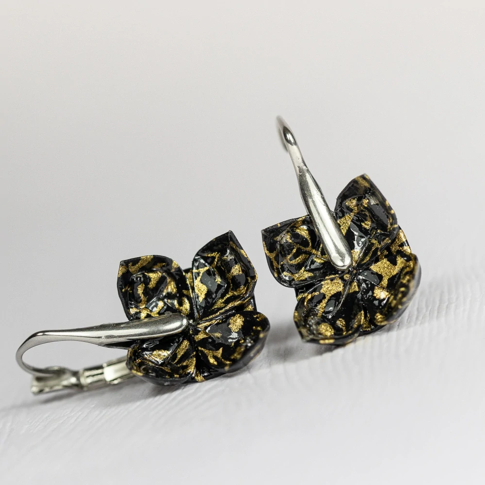 Origami náušnice vytvořené z kvalitního japonského washi papíru. Jsou upevněny na háček z chirurgické oceli vyrobený na zakázku.