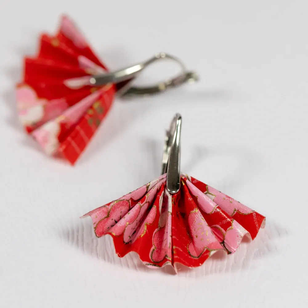 Origami náušnice vytvořené z kvalitního japonského washi papíru. Jsou upevněny na háček z chirurgické oceli vyrobený na zakázku.