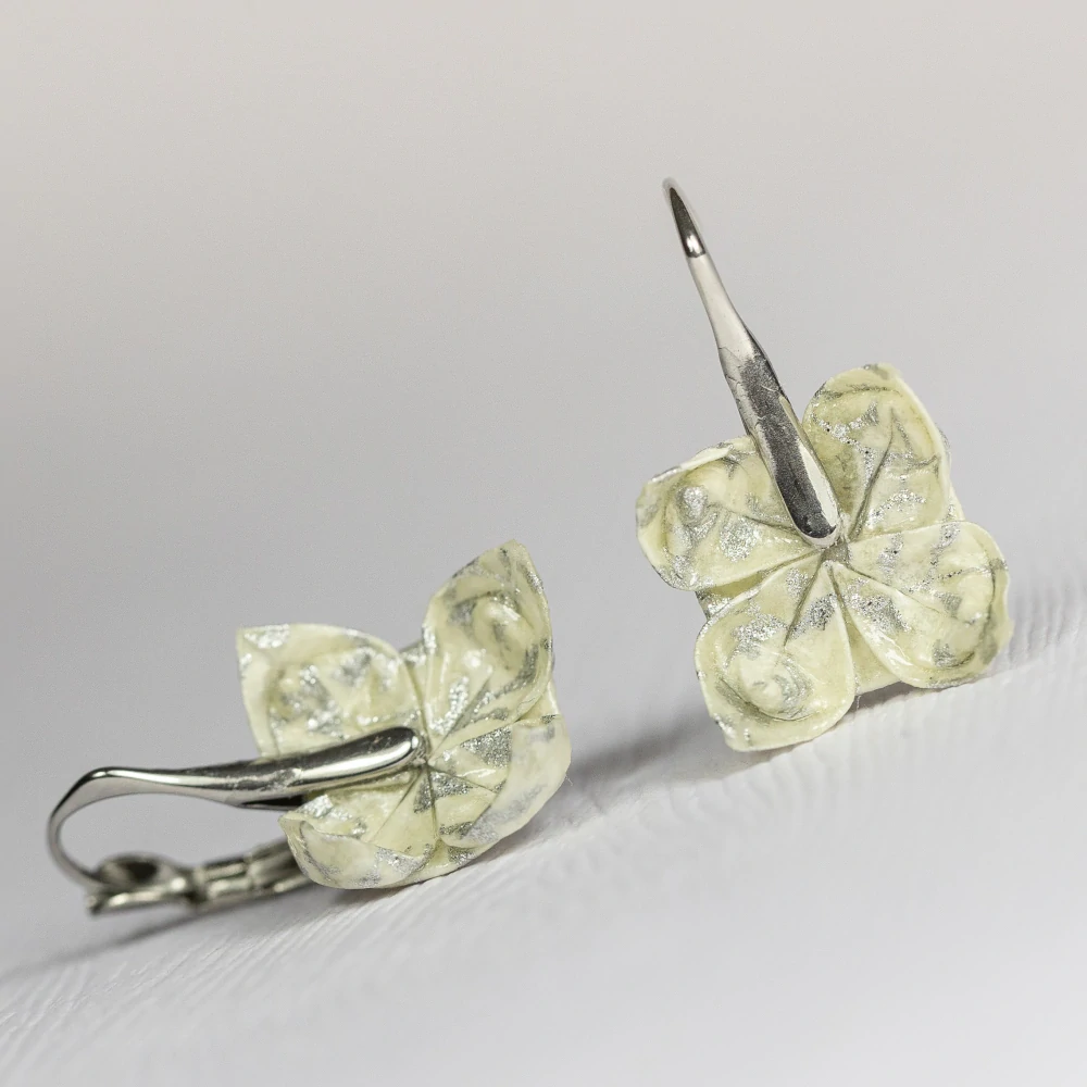 Origami náušnice vytvořené z kvalitního japonského washi papíru. Jsou upevněny na háček z chirurgické oceli vyrobený na zakázku.