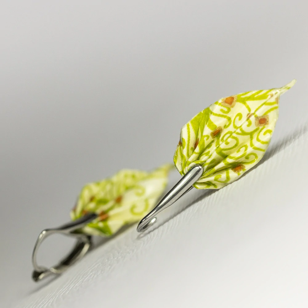 Origami náušnice vytvořené z kvalitního japonského washi papíru. Jsou upevněny na háček z chirurgické oceli vyrobený na zakázku.