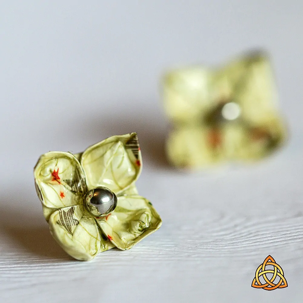 Jde o náušnice vytvořené origami technikou do tvaru lotosového květu na puzetě.