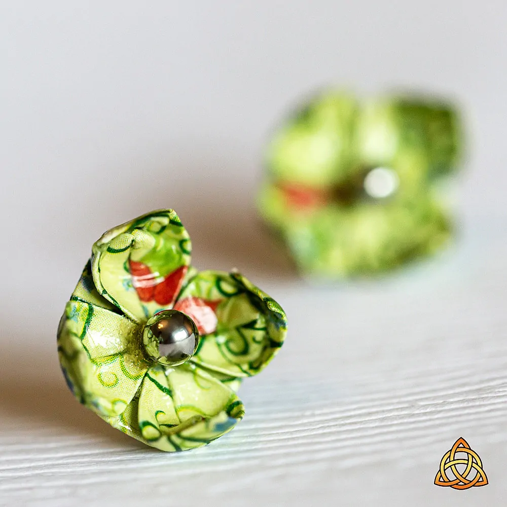 Jde o náušnice vytvořené origami technikou do tvaru lotosového květu na puzetě.