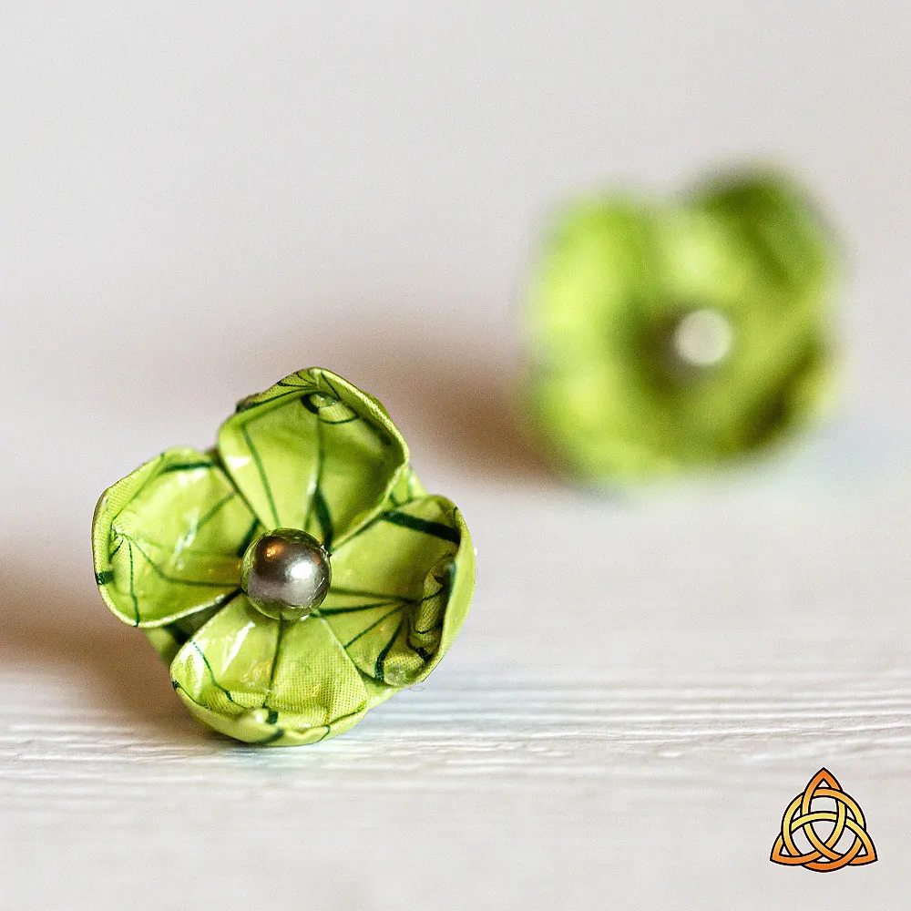 Jde o náušnice vytvořené origami technikou do tvaru lotosového květu na puzetě.