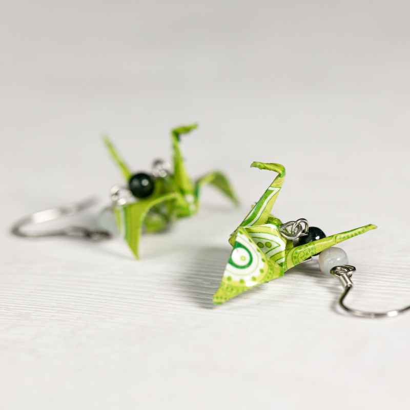 Náušnice vytvořené z origami papíru od www.maiki.cz. Složila jsem z něj tvar tradičního jeřába a doplnila korálky ze stromového achátu.